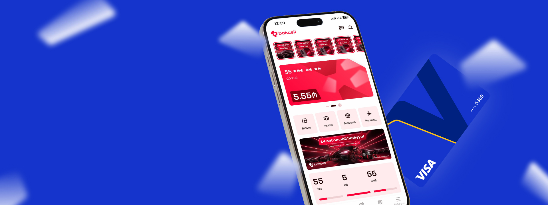 Пополняйте мобильный счет легко и безопасно с Visa в Bakcell App и наслаждайтесь бонусным интернетом каждую неделю!
